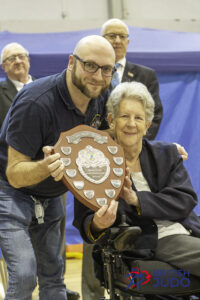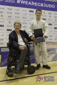 Other special awards presented by British Judo Chair Ronnie Saez, included Dan promotions for Richard Kenney OBE to 8th Dan and Dave Clark to 7th Dan. Lorretta Cusack-Doyle, the Judo and Wrestling Competition Manager for the 2022 Commonwealth Games also was also presented a gift for her services to the British Judo Association board following her departure last Autumn.