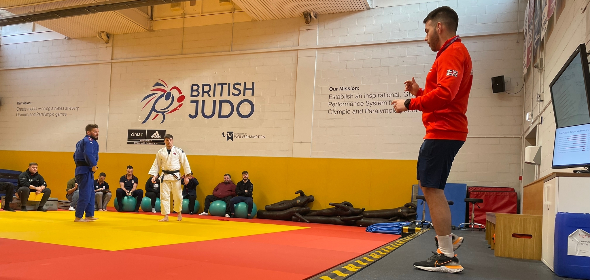 The session then progressed onto the mat with a practical demonstration of how a coach and physiotherapist work together for the benefit of the athlete. British Judo Physiotherapist, Jacob Eyres was on hand to talk through rehabilitation in judo and the need for judo-specific warm-ups to cater to the complex movements of the sport.