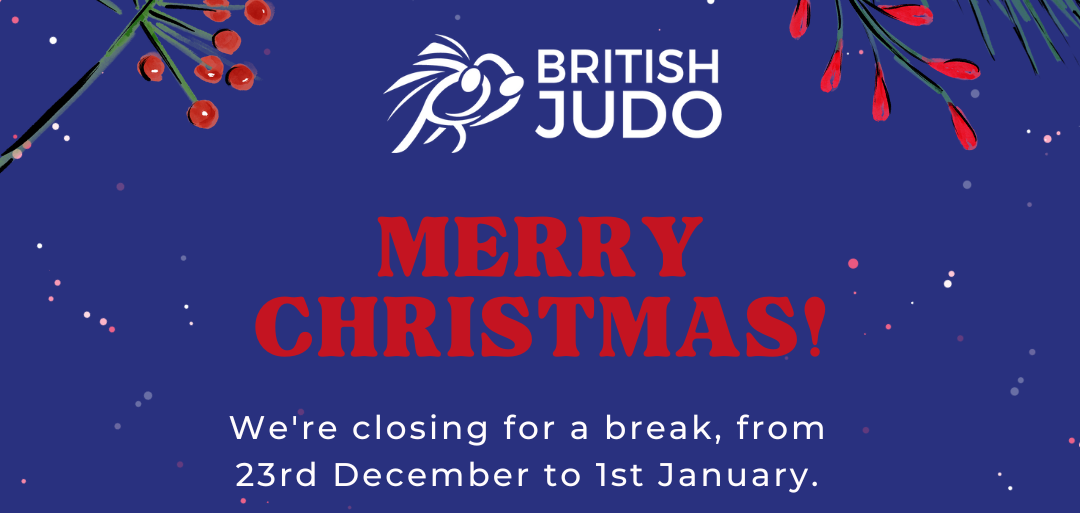 The British Judo Head Office will close for a period of time over the Christmas Holiday break. Our phone lines and Head Office will close at 12:00 pm Friday 22nd December 2023 and will re-open on Tuesday 2nd January 2024 at 9:00 am.