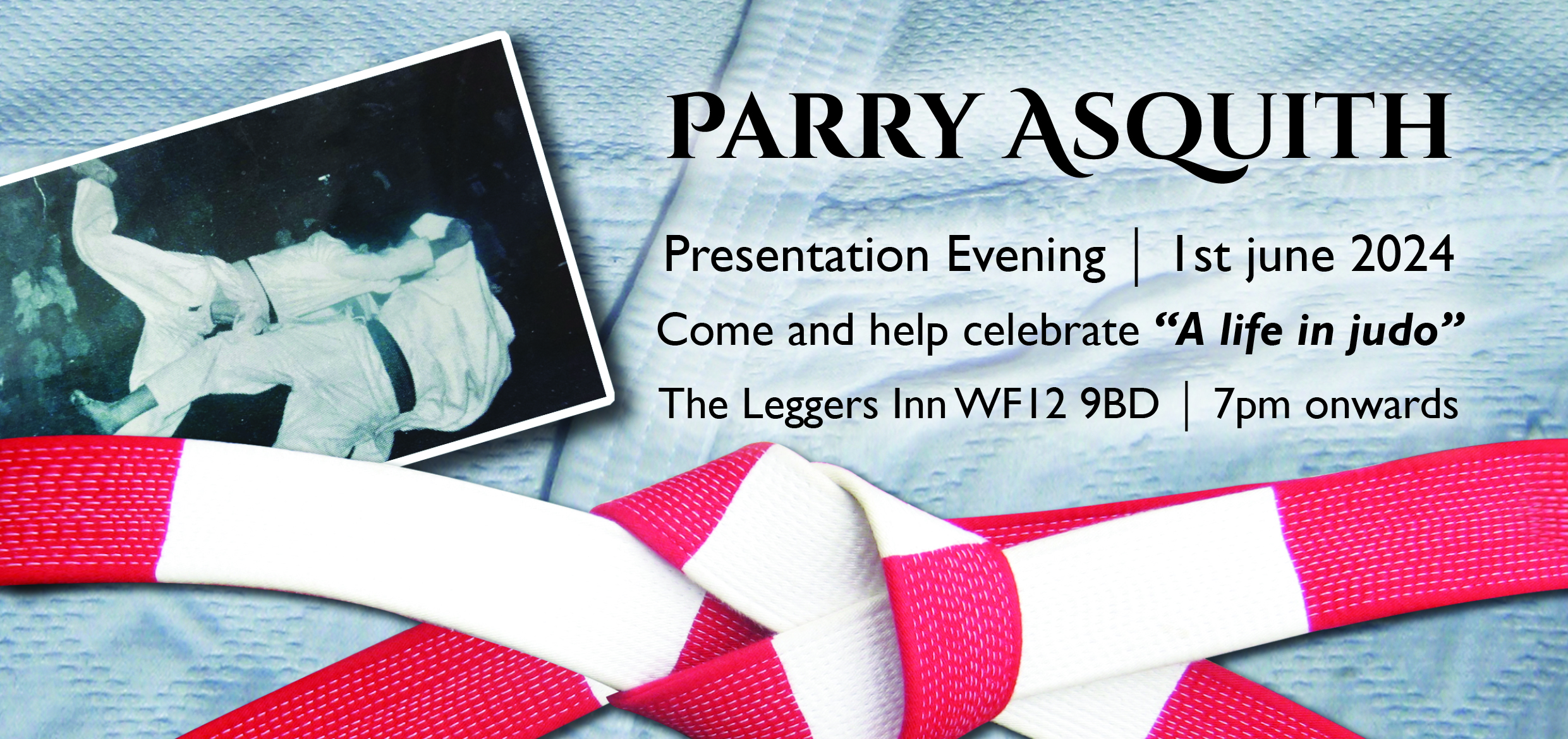 You are invited to celebrate Arthur ‘Parry’ Asquith’s induction into the West Yorkshire Judo ‘Hall of Fame’ on Saturday 1st June.