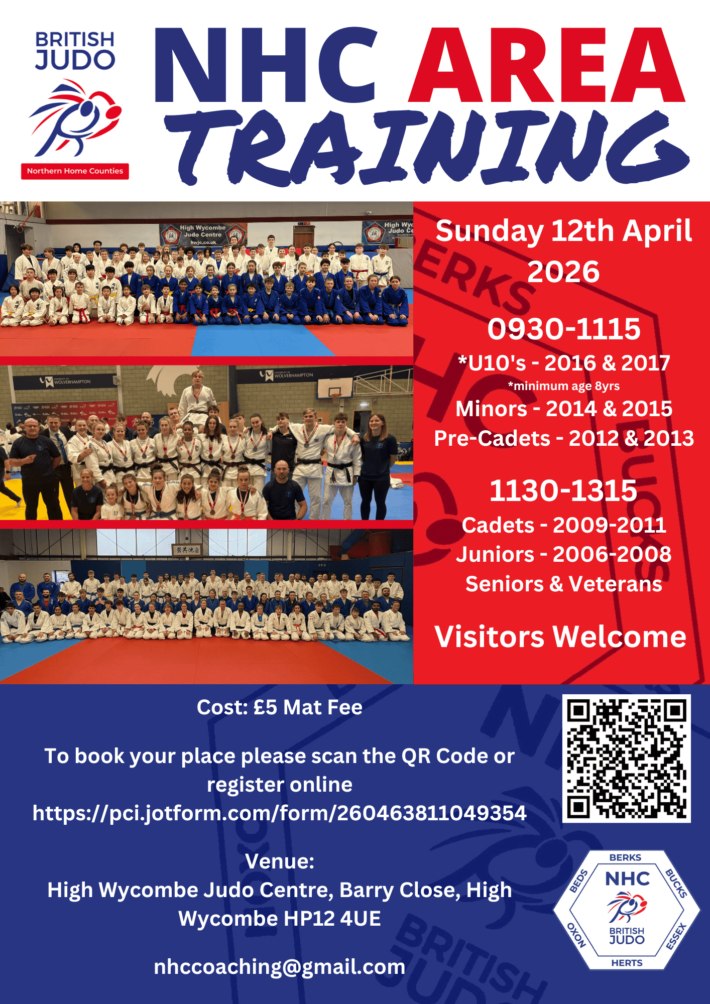 Mat fee: £5 per judoka payable to the NHC. All judoka must register in advance using the following Jot form https://pci.jotform.com/form/260463811049354