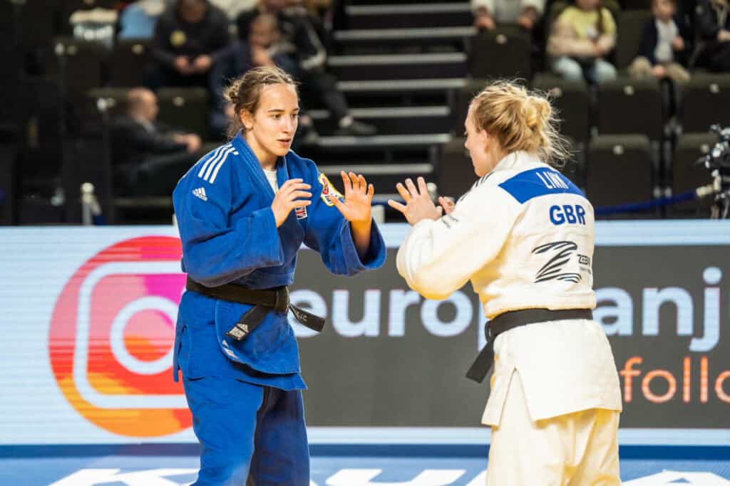 Chloe Link (Relentless Judo) backed up her Bronze medal from Poznan with another fine third-place finish in Kaunas – her seventh international medal to date. She defeated compatriot Madeleine Birri (Ealing Judo Club) to take home the medal – the fourth time that the two have been drawn together. All contests have been closed fought and this one proved no different with over seven minutes required to separate the two before Link eventually secured ippon. Birri will take comfort from pushing Link to her limit and will be looking to secure her first victory over her fellow Brit at the next attempt.