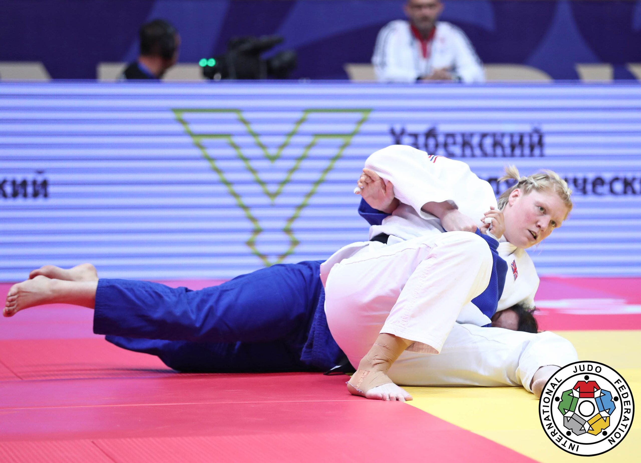 Following a bye into the quarter finals, Adlington (+78kg) was in impressive form in the morning session as she dispatched home judoka Nazokat Ibragimova within the first minute following textbook throw. It was only recorded as a waza-ari however she quickly seized the opportunity to work her opponent around the mat and held her down for the count to register the ippon finish.