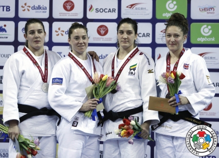 Powell recuperated during the break before stepping back onto the mat for the Bronze medal match against Madeleine Malonga of France. The World number 12 frustrated Powell using her long reach to disrupt Powell’s attacks. Powell’s two penalty points played into a tiring Malonga’s hands as it looked as if the bronze might escape her. But Powell kept going and scored a deserved yuko which Malonga was unable to respond to.