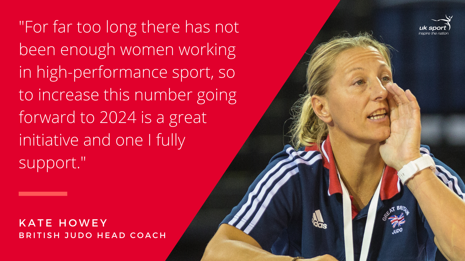 British Judo Head Coach, Kate Howey MBE, said: “I feel very privileged to be part of the first leadership programme UK Sport are launching. For far too long there has not been enough women working in high-performance sport, so to increase this number going forward to 2024 is a great initiative and one I fully support.