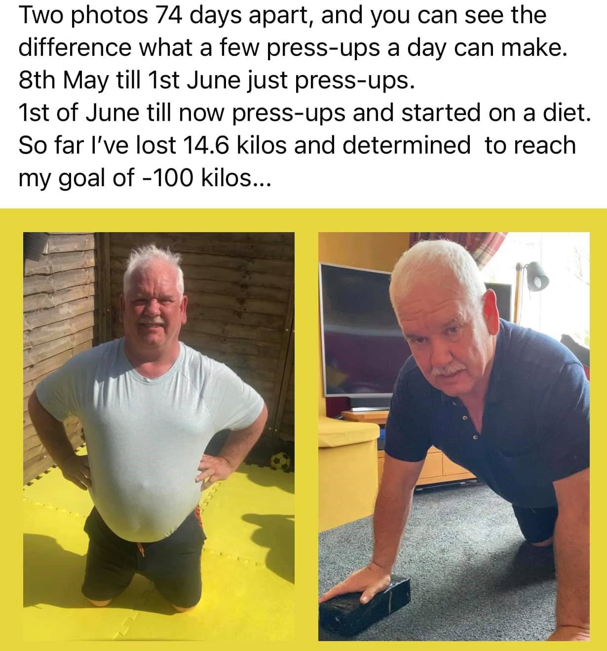 After reaching day 100 of my shared daily exercise routine, I decided to mix it up a little to help keep that motivation within the group. Now I have been doing 30/120 which is 30 press-ups and 120 squats. I have now added extra press-ups at the end and will start to gradually increase this.